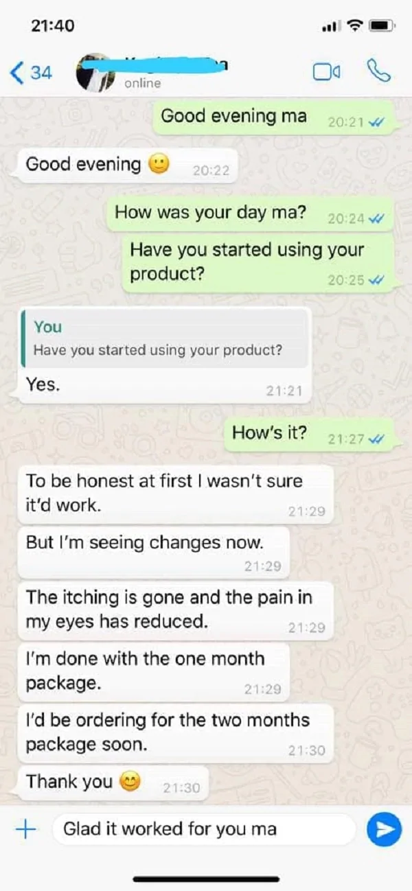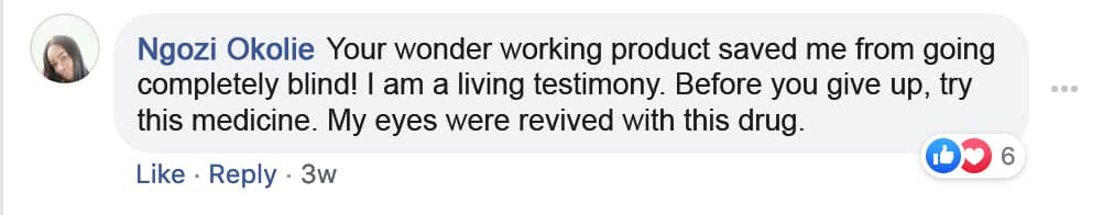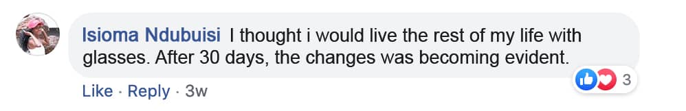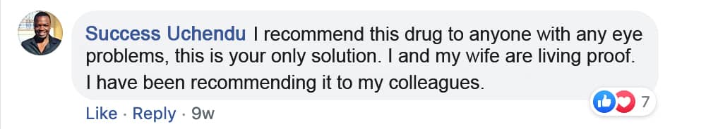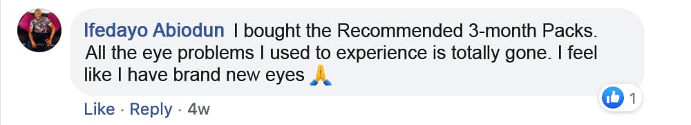 But I wasn't going to stop there. I knew that many other Nigerians are going through what I went through with nobody to help them out, especially considering the huge hospital bills. I didn't want them to go through what I went through. So, I made further arrangements with Dr. Justin, and he agreed to connect me with his supplier. Right now, over 11,000 Nigerians have benefited from this natural eye solution, and they have all been seeing positive results.